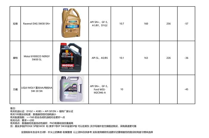 本着不折腾不幸福的理念,收集和整理了一下某东能够买到的相对高品质且适用于锐际的全合成机油型号
