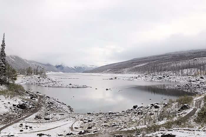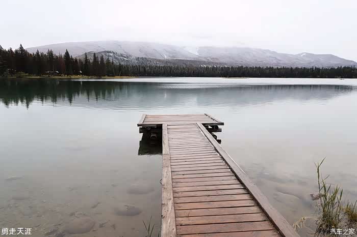 金字塔湖,位于一座象金字塔的山脉脚下,只是这天有云雾,看不到山脉。