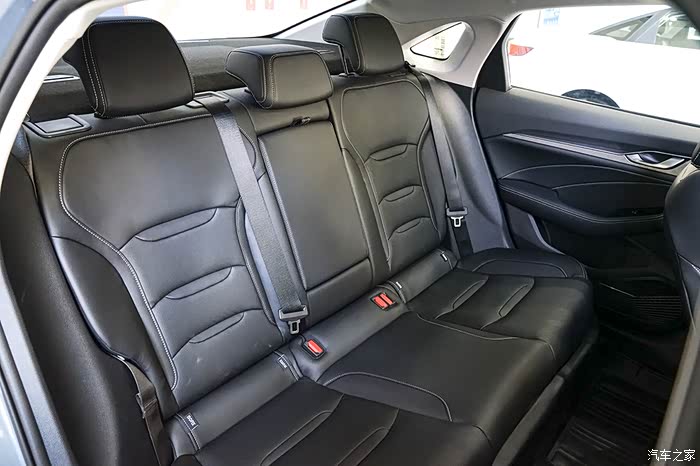后排座椅与前排设计基本一致,同样运用上拼接、缝线、打孔工艺,而且座椅非常宽大,腿部支撑性很到位,即使是长途跋涉也能保障乘员的舒适性。第三个头枕没有缺席,好评!