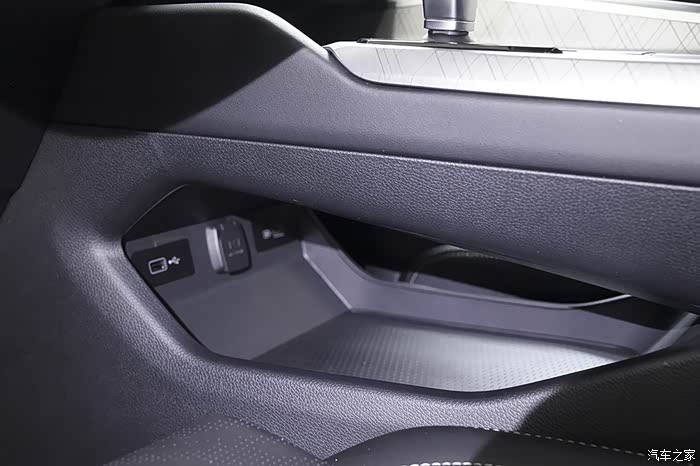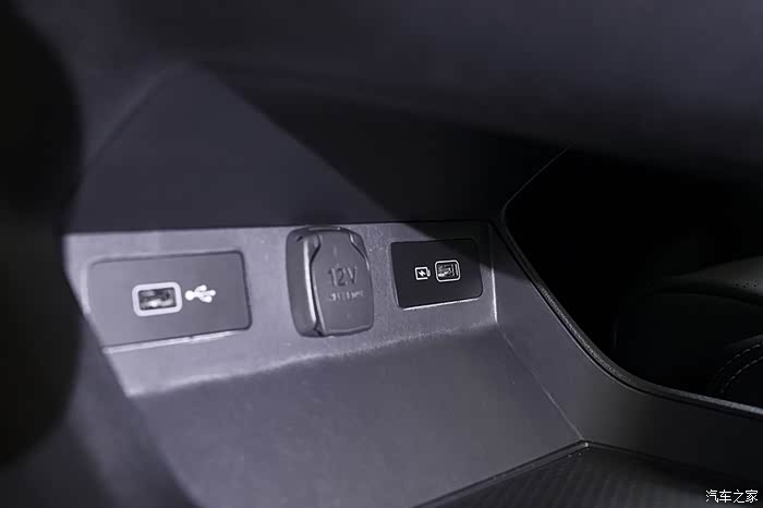 由于是电子挡杆,地台下面节省出一个不小的空间,设计师巧妙的把TA利用了起来,掏出一个不小容量的储物格,前面设置了USB/Type-C和12V电源,方便电子产品充电时放置。