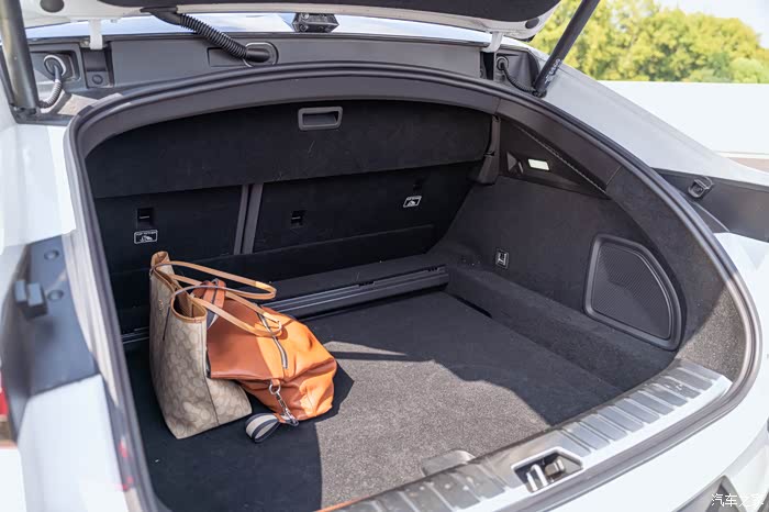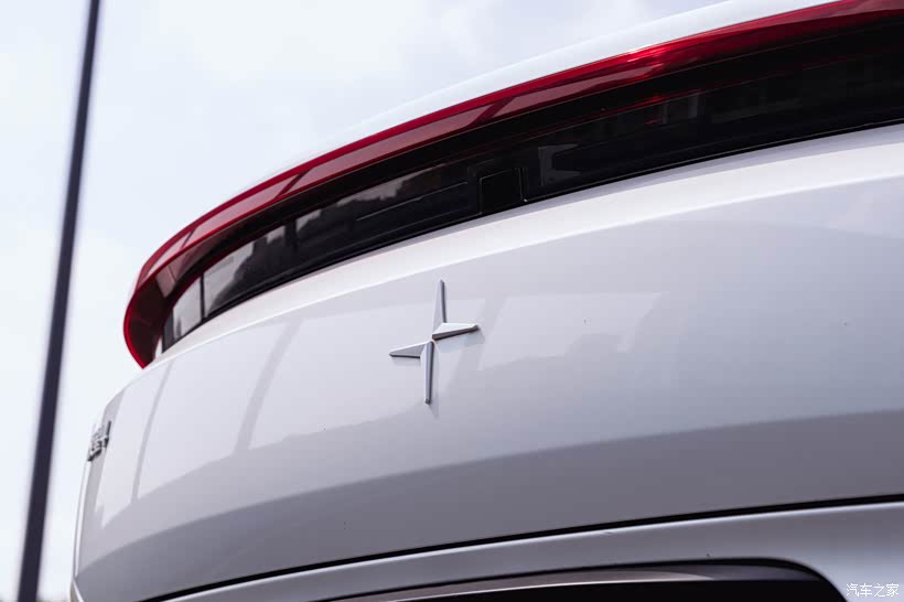 车尾的设计和前脸不太一样,尾灯是几字形的贯穿式设计,还有一个很有意思的点,极星4没有配备后挡风玻璃,它是通过顶部的摄像头直接传递图像到内后视镜上。这个吧,比较激进,仁者见仁智者见智。毕竟,有很多超跑,你也是看不到后面的。