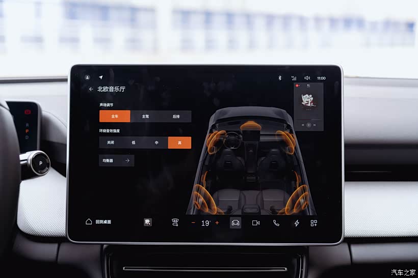 车机系统搭载是Polestar OS,搭载的是高通骁龙8155芯片,这个芯片放在现在只能说是正常水准了。同时它的语音助手支持四区域唤醒识别,也能连续识别,也试了下,还不错,空调、导航等这些事情都可以交给它做。