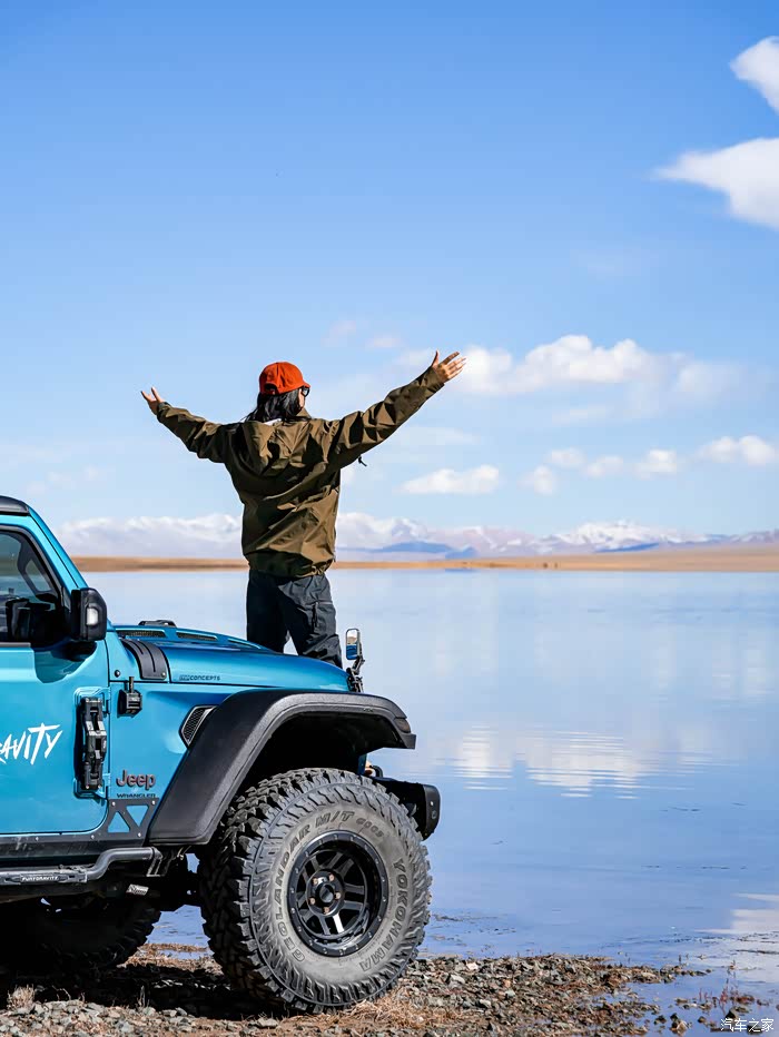 西北的晴天最易出片,特别是在湖边,无论是小柴旦湖还是秀沟这片湖,随手拍都能拍出人生关键帧。这辆特意改造过的蓝色牧马人,在秀沟的湖边毫不违和,完全融入了这片诗画山水中。我们走的路线,过了湖才是秀沟的山群,一路上都没有什么明显的地标。据向导说,能找到秀沟这片湖的路线很少,我们走的算一条。