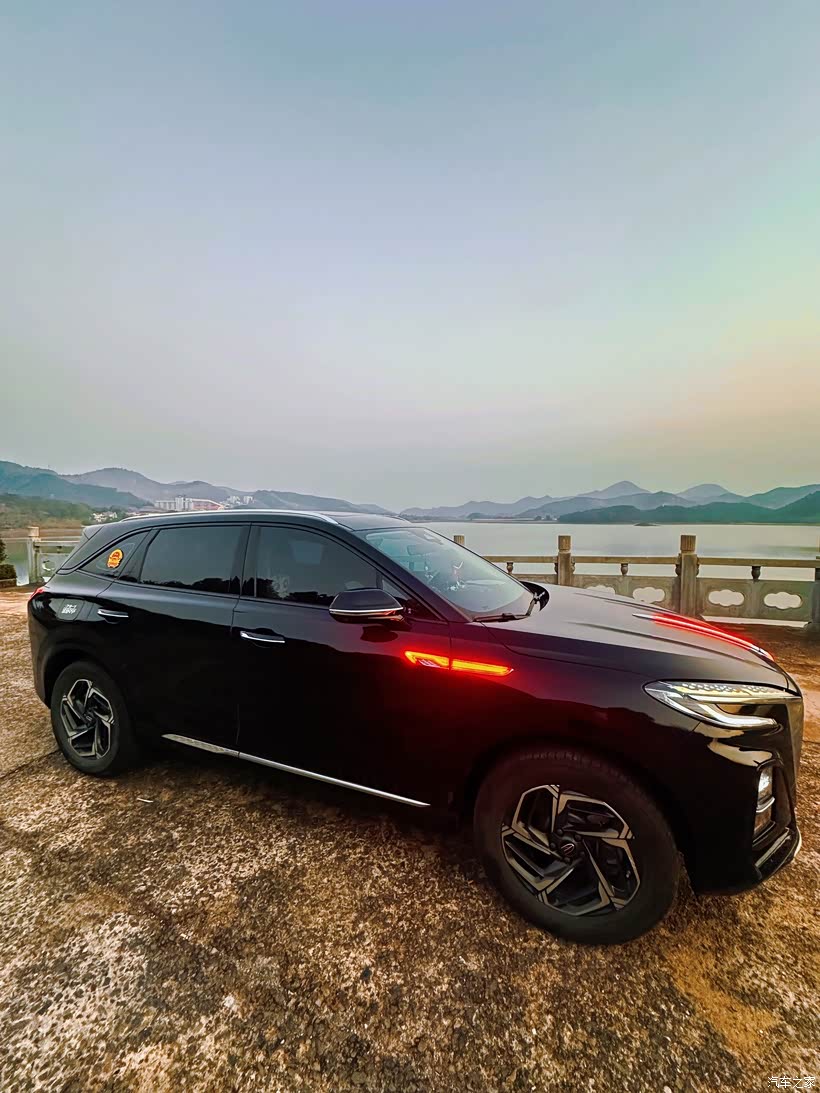 水库边的暮色揉碎在水波里,红旗HS3的曜黑车身却在这温柔景致里划出凌厉锋芒。溜背式车顶线条顺着远山轮廓舒展,贯穿式尾灯如红绸掠过湖面,与天际的霞光相映成趣;引擎盖的红色饰条刺破暮色,像从山水间抽离的一抹赤焰,中式美学的大气与现代轿跑的动感撞了个满怀。打开车门,坐进座舱的瞬间,一边是水库烟波的静谧悠然,一边是红旗HS3的硬核气场,山河壮阔与座驾锋芒,都成了掌中的风景。