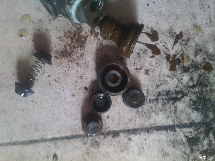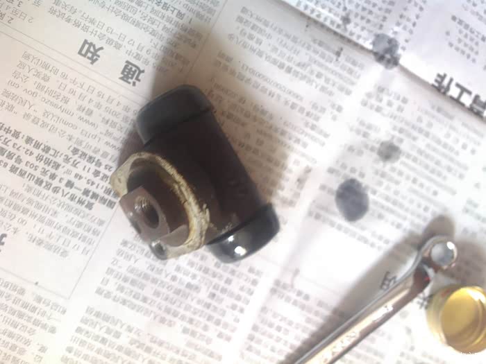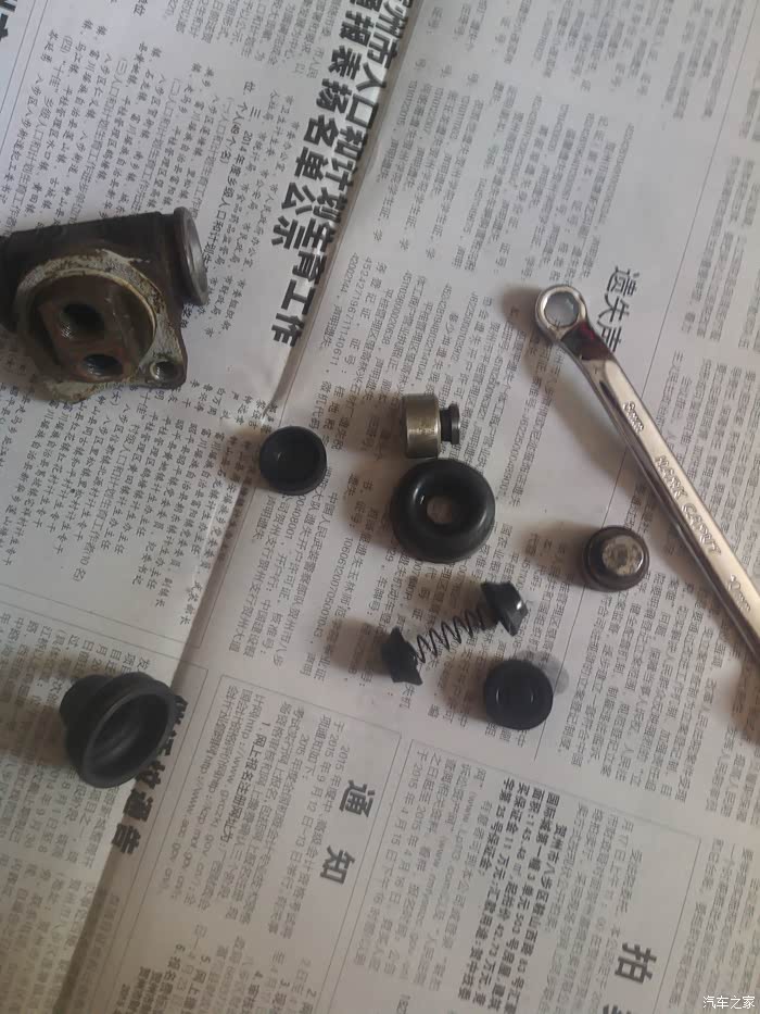 分泵这东西,我见过别人拆过。里面结构很简单。心想能不能修复呢?只要皮封没有坏,按理说,能。只要把铁锈打磨去,加上润滑油,应该没事。动手吧。我拆,我拆。。。。。。。
