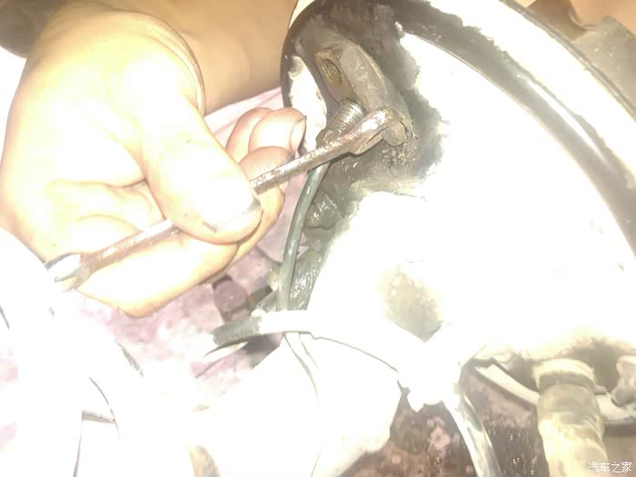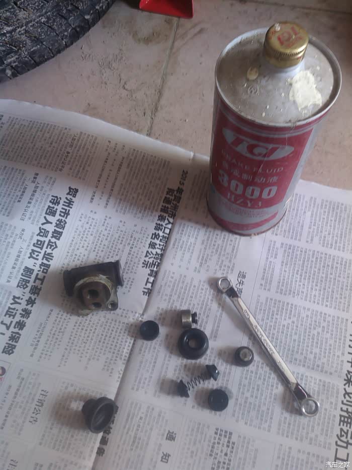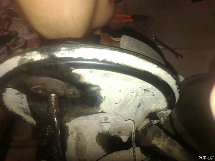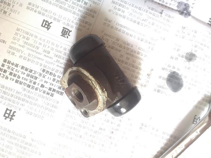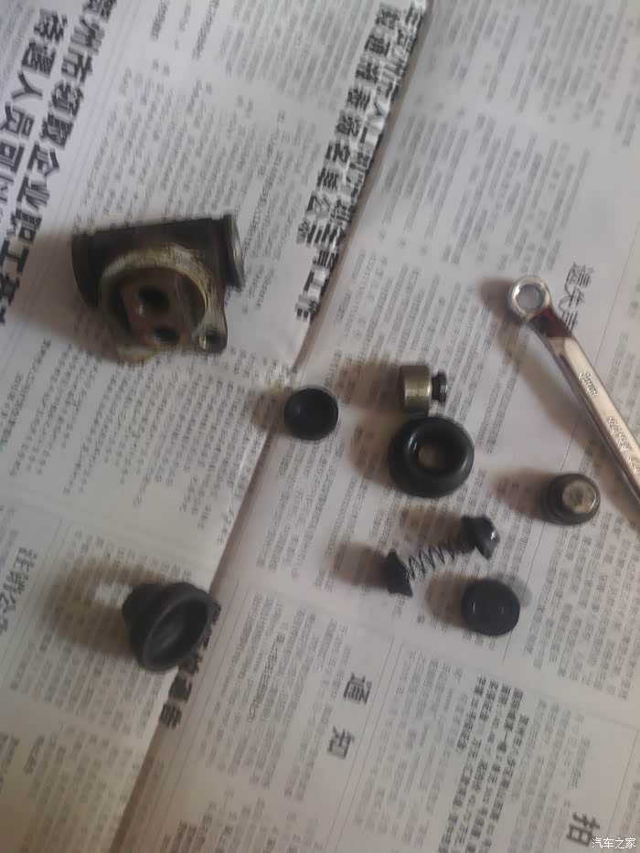 可是问题来了,不管怎么装,外盖都不能正常装上,总是一边凸出来。没办法归位。仔细难查,原来是分泵有问题了,一边锈死了,压不进去。