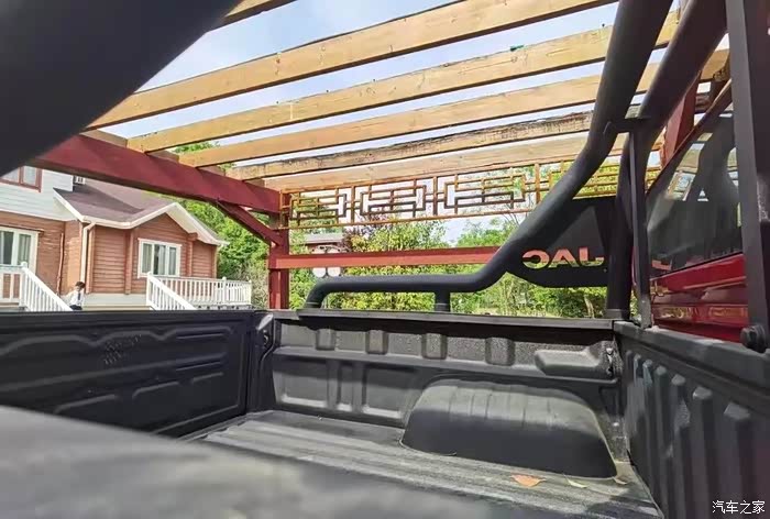 在满目翠绿的世界里,这辆红色的悍途也显得格外迷人。