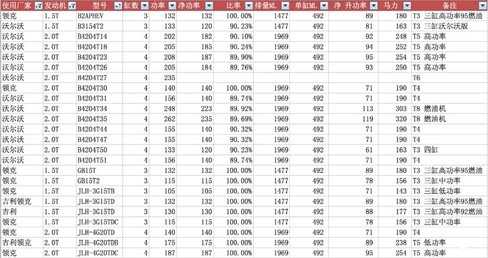 还有一点,星越用的T5是低功率T5,从一些网站资料可以看到,其缸径数据与1.5T三缸是一致的,也就是说,吉利和领克现在那款三缸1.5T132kw或者130kw的,其四缸版便是星越低功率T5:JLH-4G20TDB,领克05也申报过这款。