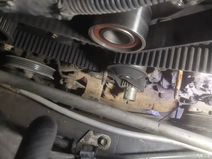 从图片当中看我的正时皮带什么的,外观还是蛮好的。有人会说,你只要定期更换一个正时皮带就可以了,为什么要换这么多呢?我为什么会更换这么多配件,我是想一步到位,因为我车子的过渡轮在用了16年以后,只要发动机一工作就会发出滋滋的异响,而我再联想到其他的正时部件已用了16年的情况下,干脆一次性换了,免得日后时常来修车,这也是为了以防万一。