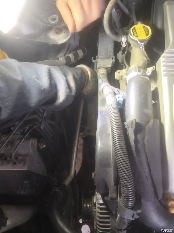 图片当中的水箱上水管是我原车用了16年的水管,在时间的摧残之下,水管已经变得肿胀发硬了。而且管壁已经变得非常薄啦,你用手摸都能摸出来这种感觉,为了以防万一,夏天温度高时会爆管,我决定提早更换一个原厂的水箱上水管,顺便也检查了一下其他的水管没有发现同样的问题。