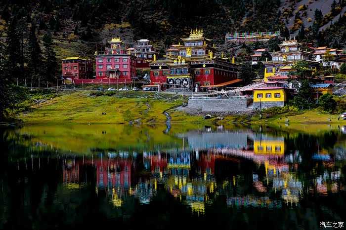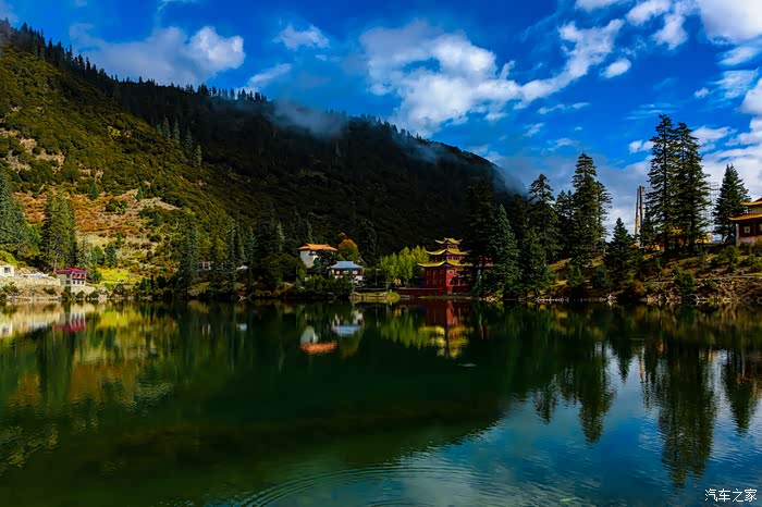 措卡湖给了我一个特别大惊喜,不愧为“人间仙境,九天瑶池,这里没有摩肩接踵的游客,没有大声吵闹的喧哗,没有车来车往;只有清澈碧绿的湖泊,神圣古朴的寺庙,和高大笔直的树木。寺庙旁边有几顶帐篷,交流了一下,他们是昨天从稻城亚丁过来的,昨晚在湖边露营...简单的问了一下稻城亚丁(下篇会详写)的情况,我们就开始疯狂的拍照了...拍的不太好,所以就放了几张,大家将就一下。