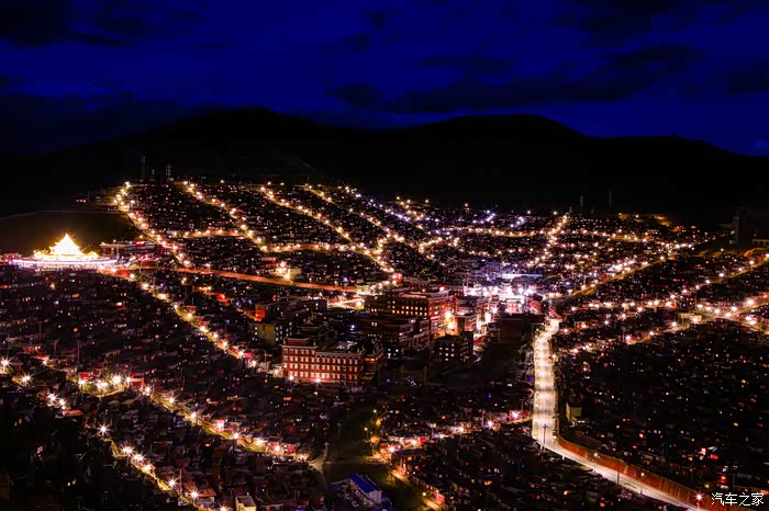 大概在五明佛学院转了三个小时左右,把基本的路线都走了一遍,到了晚上9点左右,因为排队坐公交车的人太多,临时决定和媳妇走路到山下的停车场,晚上夜宿色达县城。