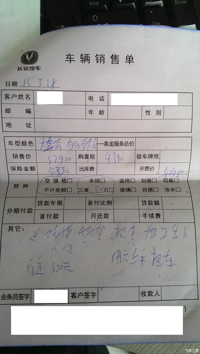 最终,提的白色2014款奔奔IMT天窗版,比原计划多支出0.72W啊,伤不起啊;物品如下:IMT天窗版裸车5.39W,送脚垫、贴膜、方向盘套、掸子、香水、鹿皮,花了200装了发动机护板(懒得淘宝了,还要找人装),10元临牌,4s共计花了5.411W人民币。保险就在4s买了,也就比外面贵200多,懒得弄了。当中还发生一个小插曲,连保险一下子刷了5W多,银行拒绝交易,联系银行说信用卡大额保护,确认个人信息以后就可以了,但要等10分钟以后,后来成功了的。