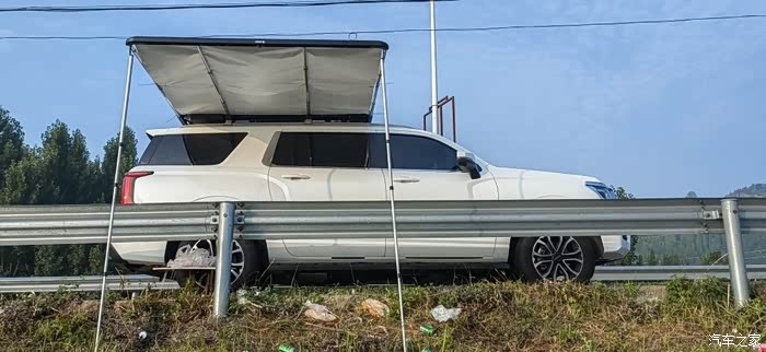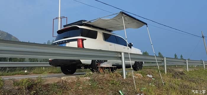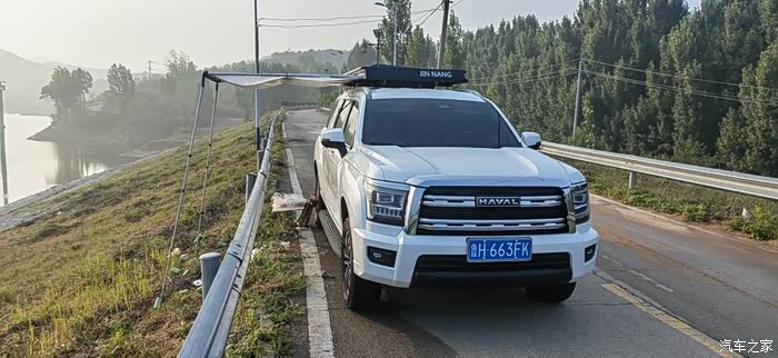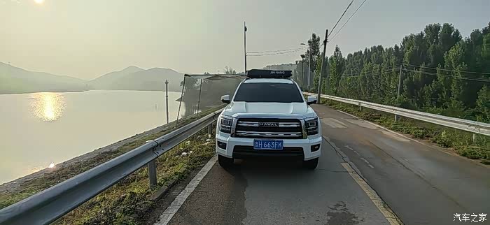 这是我这次钓鱼的目的地,一个水库,我这次是起早就来了,到了目的地我要先把我的车顶天幕打开,和大家推荐一下,我在我的哈弗H5车顶安了天幕和车顶帐篷,因为这款车车身有5米多长,所以在车顶放一个帐篷和天幕非常不错。户外露营,钓鱼都可以用。