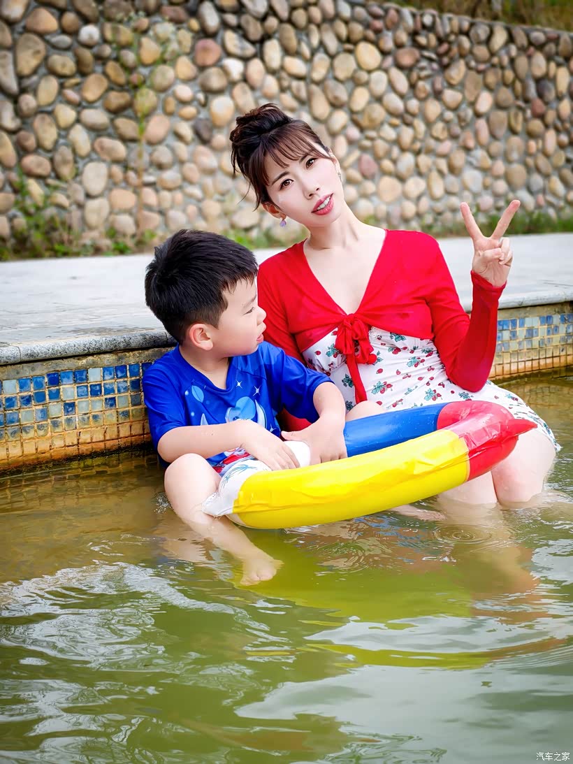 潼潼在浅水区玩得不亦乐乎,一会儿泼水,一会儿捡鹅卵石,还非要给斌斌“洗头”,把斌斌弄得哭笑不得。老婆靠在温泉池边,闭着眼睛享受着这份难得的惬意,嘴里还哼着小曲。我则坐在一旁,看着妻儿的笑脸,心中满是幸福。突然,潼潼脚下一滑,摔了个“屁股墩儿”,他不仅没哭,还笑着说:“温泉水好软,比家里的沙发还舒服!”逗得我们哈哈大笑。