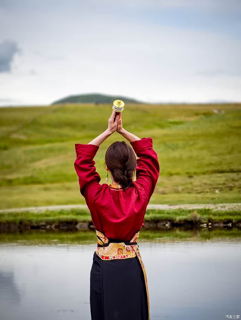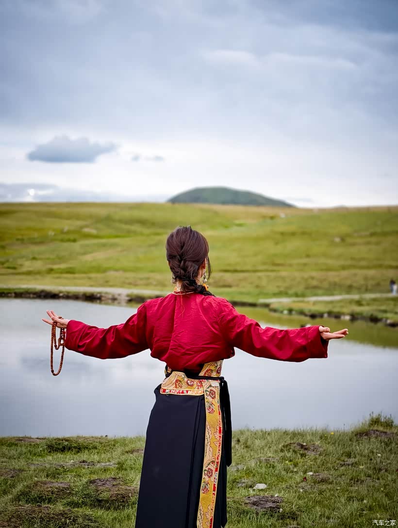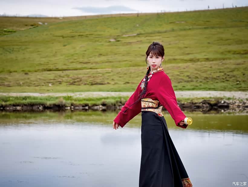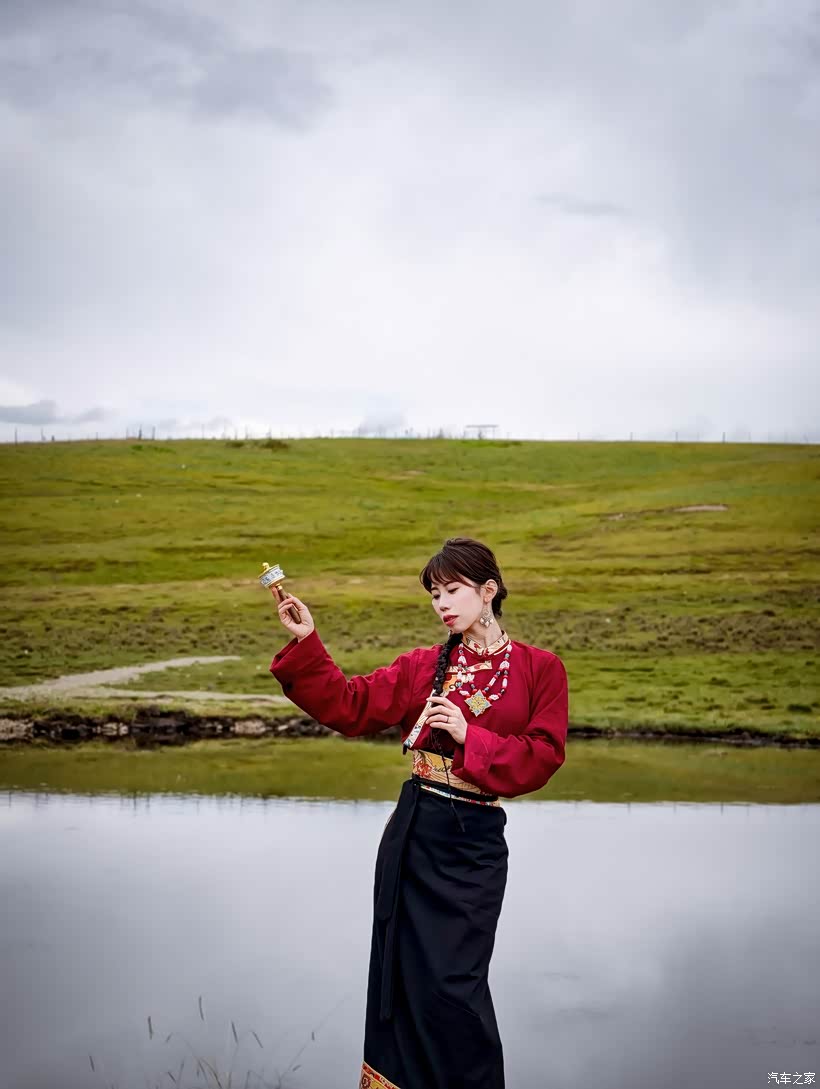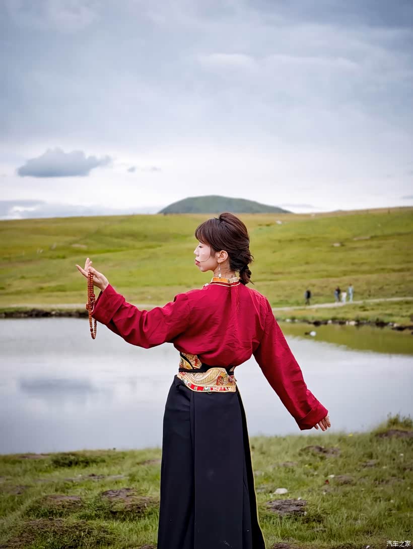 她拉着我们冲进去,一眼就看中了一套红上衣黑长裙的藏装,非要让店员给她打扮成“草原卓玛”。店员麻利地给她穿上藏装,戴上羽毛头饰,化了个淡妆。当老婆从试衣间走出来时,别说,还真有那味儿——红色藏装衬得她皮肤雪白,眉眼间带着几分娇羞,活脱脱一个从草原深处走来的卓玛。