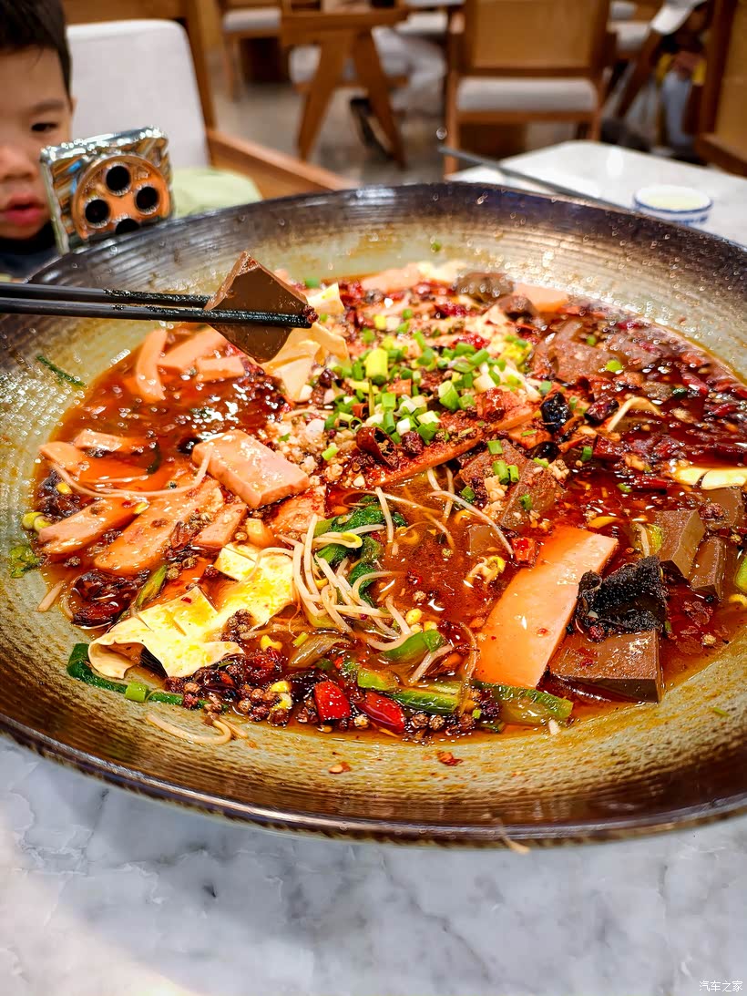 泡完温泉,我们前往餐厅享用晚餐。早就听说康定的川菜味道正宗,我们特意点了招牌的毛血旺和酱肉丝。毛血旺端上桌时,红油翻滚,香气扑鼻,鸭血、毛肚、黄喉等食材在汤汁中沉浮,看着就让人食欲大开。