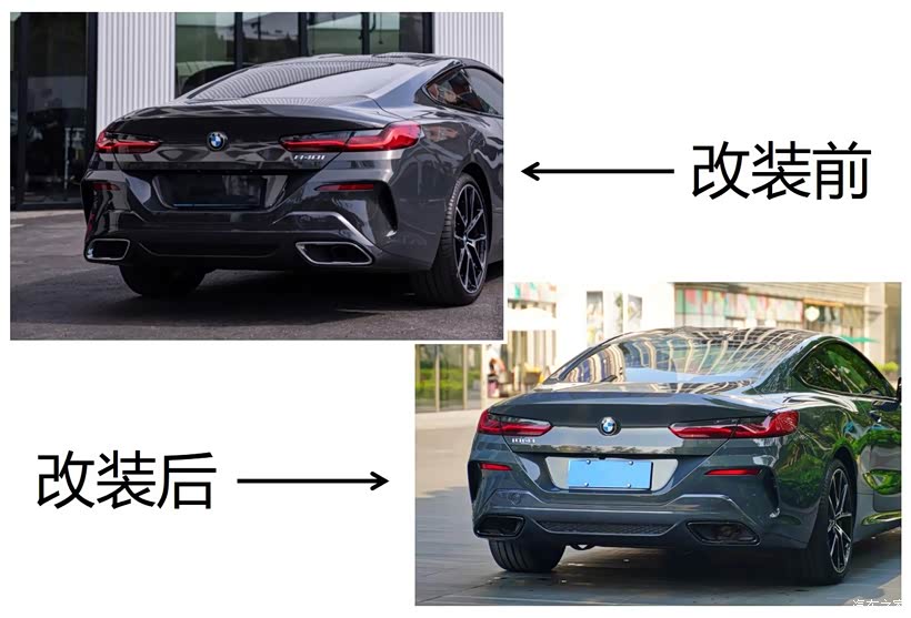 1、双门版的8系外观绝对称得上是轿跑的典范,车头、车尾和侧面都是运动范十足。另外,由于8系双门比较冷门,回头率巨高。