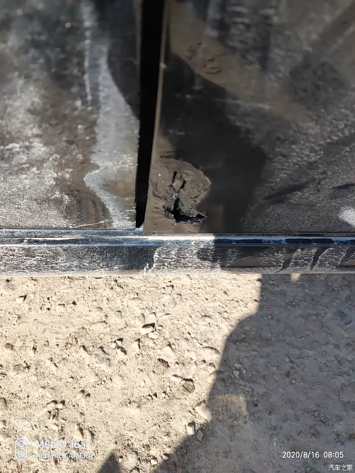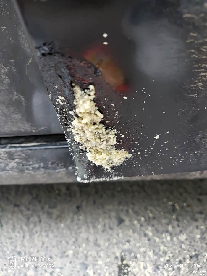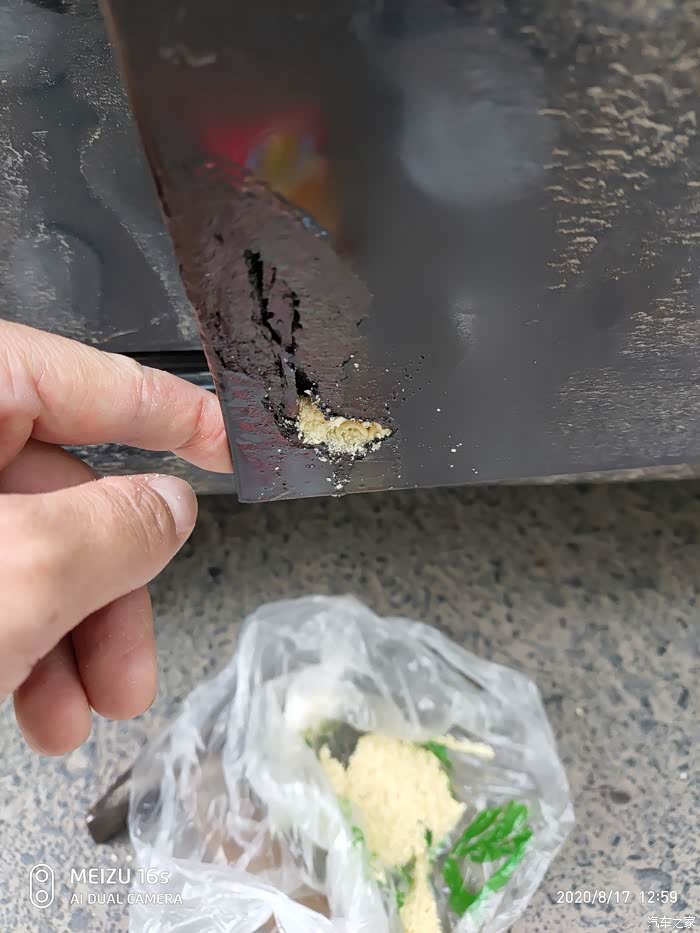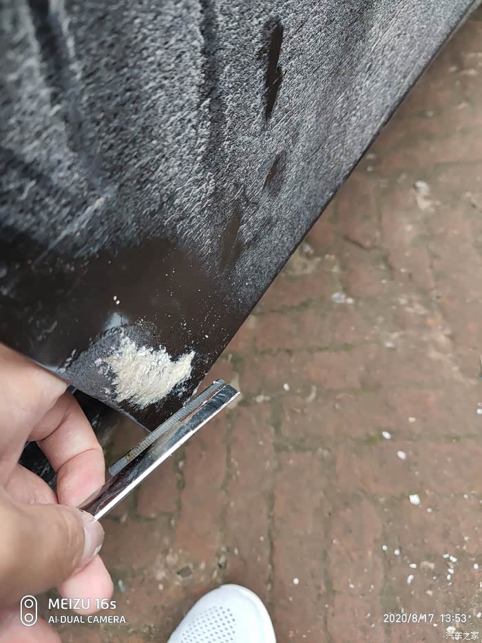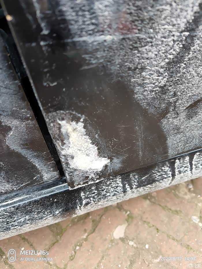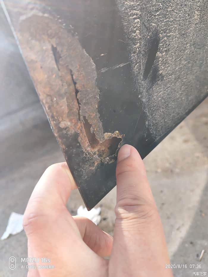 这个地方应该是受到外力撞击造成的,只能把生锈的部分打磨之后重新喷漆应该就好了。