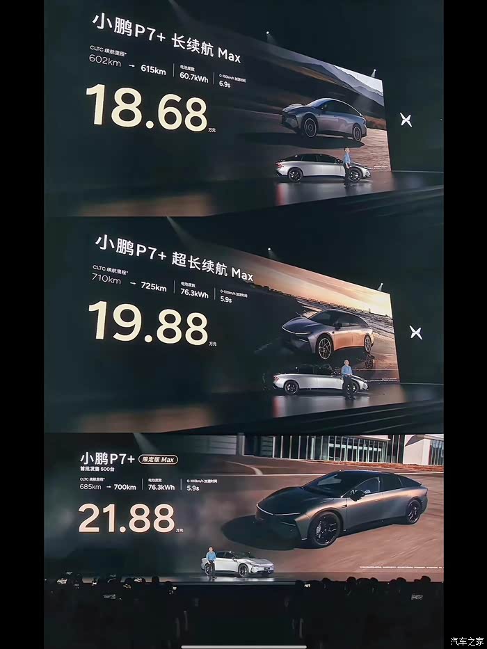 首先,咱们得说说价格,小鹏P7+共有3个版本,价格区间锁定在18.68-21.88万元,起售价18万,对于一款配置丰富的新能源车来说,这个价格还是相当有竞争力的。