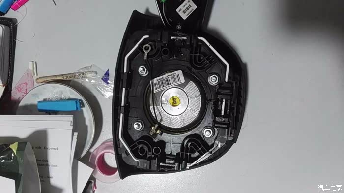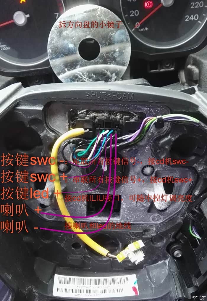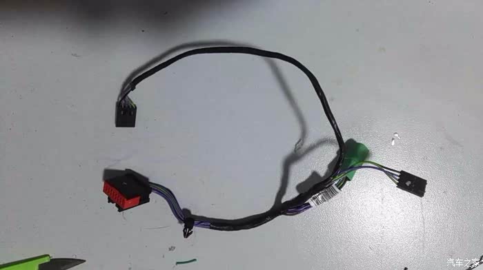 方向盘的线束就完事了,开始接cd机,先把气囊游丝下端的接口增加三根线,通过中控接到cd后面。
