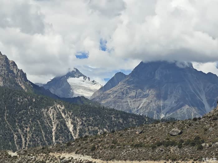 第五天(9月19日)八宿——鲁朗国际旅游小镇(370公里)。八宿出来又翻越安久拉山,过然乌镇时我们往察隅县方向前行了几十公里去往来古冰川,然乌湖谷地景色优美,远眺来古冰川。