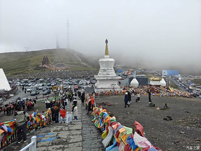 第二天(9月16日)泸定——雅江县(195公里)。一路中到大雨,直到快上了折多山顶才不下雨了。折多山海拔4298米,现在是318成都往西藏方向的第一座海拔较高的山,大部分东南部平原来的人在这就会有明显的高反症状了。我在这里走了大概500米缓坡路就气喘胸闷头发晕,吸了几口氧气立马神清气爽。四川境内的318路况还是比较好的,上山的路大部分都是两车道,大卡车、动力较弱的小排量车由于海拔高含氧量低动力衰减,爬坡较慢,大排量和涡轮增压车型就要好些,动力还跟得上,不过要深踩些油门。