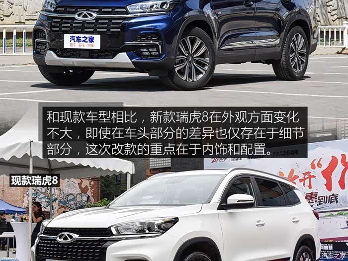 大约在一年前,来自奇瑞T1X专属SUV平台,并融合部分捷豹路虎技术的奇瑞SUV家族旗舰车型——瑞虎8于2018年北京车展正式上市。仅仅一年之后,我们就迎来了它的改款车型——2019款瑞虎8,新车搭载奇瑞第三代1.6TGDI发动机,在内饰设计和科技配置方面有了大幅提升。在它正式上市之前,我们不妨先对它进行一次初步的了解。