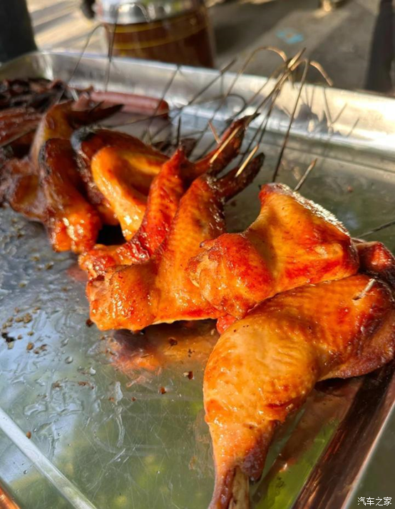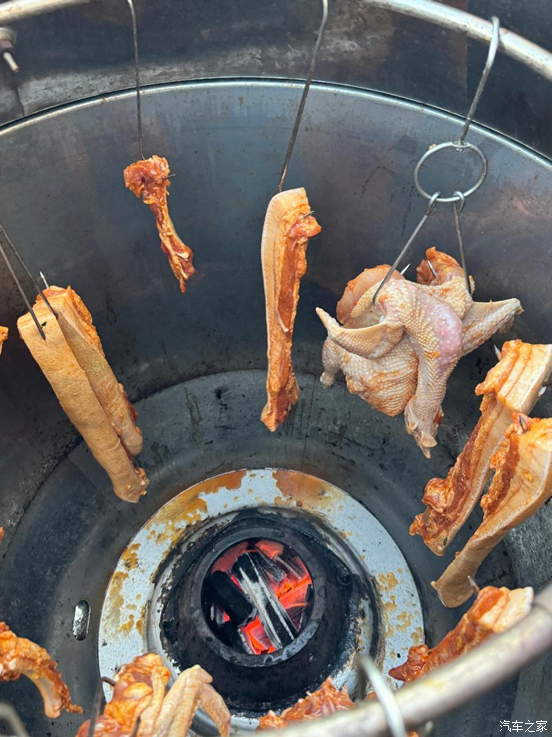 回到家,家里人忙着给长辈庆生,还特意支起烤炉做烧肉、烤鸡。腌好的肉块、整鸡挂进烤炉,底下炭火烧得通红,过个十多分钟就已经开始出香味了,吃的就是这口现做现吃的新鲜。