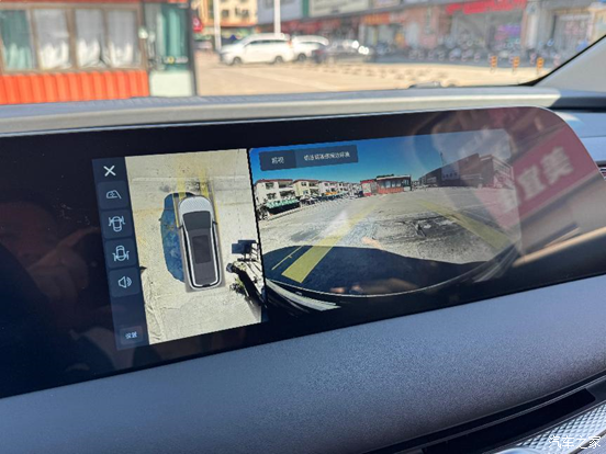 回镇上发现路虽然都修好了,但是很多地方都比较窄,车位规划也没那么规范,停车只能自己找合适的地方。在这种地方开车,最好还是有360 全景影像,屏幕上能清楚看到车辆周围的情况。