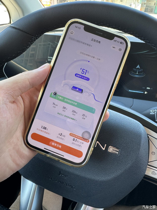 手机和车上都能看到充电情况,这车快充只要18分钟是真省事,这边的充电站免2小时停车费,我这车来充电才这么点时间,停车费根本没交过。平时上下班开这车,我也是只用纯电就行,没电了随便找个时间去充就行。