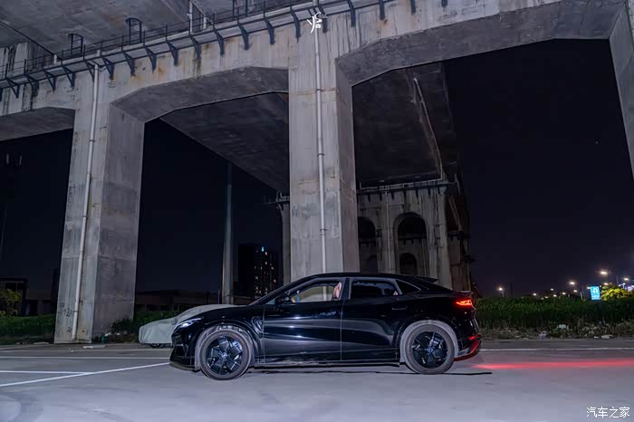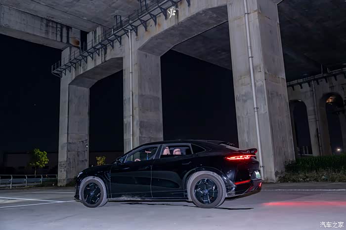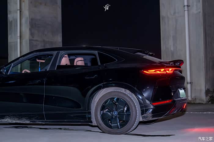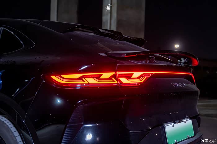 而最让我喜欢的还是它的尾部设计,溜背的造型,外加镂空式顶翼扰流板以及智能自适应电动升降尾翼,看起来就有一种跑车的感觉,而且车子还做了宽体的设计,并且尾部看起来也有一种猎装车的感觉。