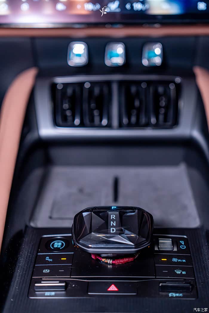 在车里,同样也有很多高科技,15.6英寸的可旋转大屏,犹如钻石般的水晶档把,方圆交错的空调出风口,这些设计确实都是可以让人眼前一亮。