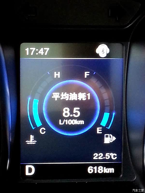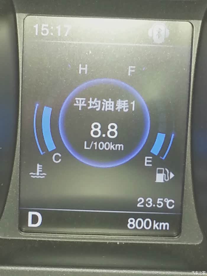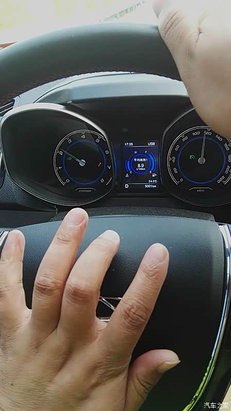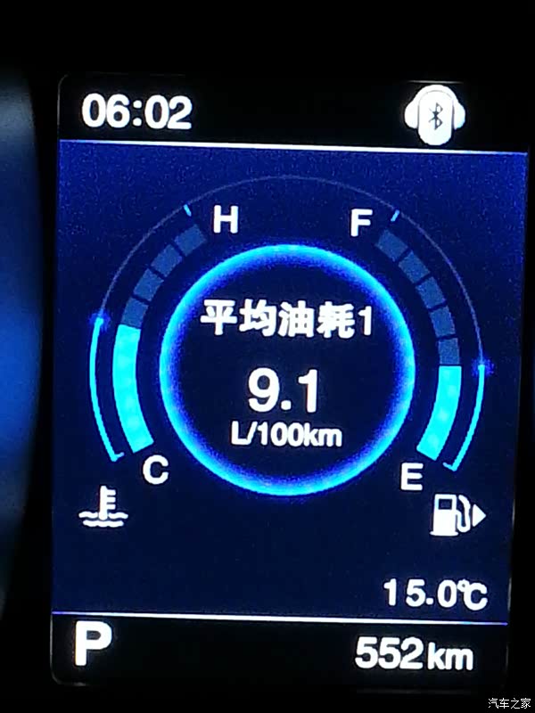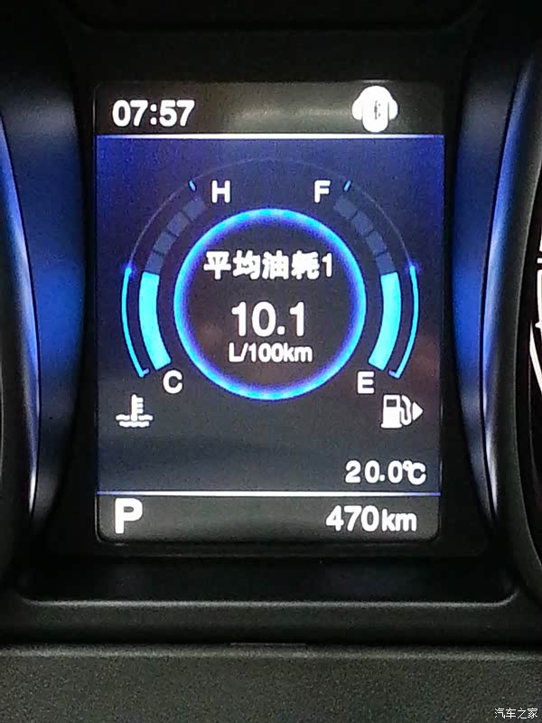 。等到一些事办完,我们开着车回家,可一上路就发现仪表盘上有个胎压报警,一直没有胎压监控的显示,我想可能是有问题,就调头回4S店里让修理工看看,正好他们的一位修理总工在,看了下说,要重新学习,叫了个修理工来把车的四个轮胎重新学习了下,就好了。就这样去了一个多小时,在往回家路上走时发现遇上堵车了,没想到这回家都这不顺的,想想这买车的经历都出了好多事,搞得人都疲惫不堪,这回去都花了两个小时,想想车都提到手了,好事多磨嘛。可低头一看下这油耗,最高是20升/100KM,就因为这车排量有点大,LP大人就担心油耗的问题,我说这不要紧是因为堵车,车子跑不起来,起来了就会降的。正如我说的,一但跑起来油耗就下来了,后面有图。在4S店的试车时觉得噪音有点大,但开着自己的车时感觉噪音没有试驾时大,而且我LP大人也觉得还行,她还有鼻炎对味道很敏感,但我问她车上的气味时,她说不是很大,我也感觉味道没有网上有些车友说的味道好大的。到七月份武汉天气很热,温度也高就高温时把车子好好暴晒了两天,车内的味道少了不少,车子还是要多通风。
