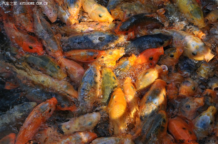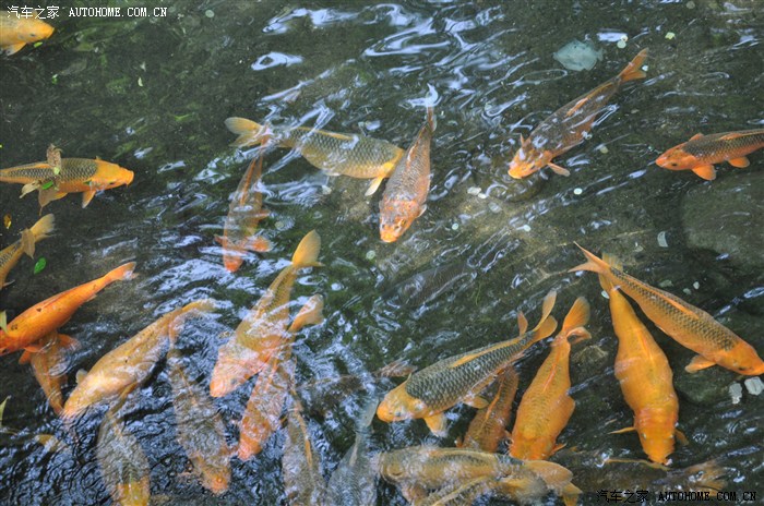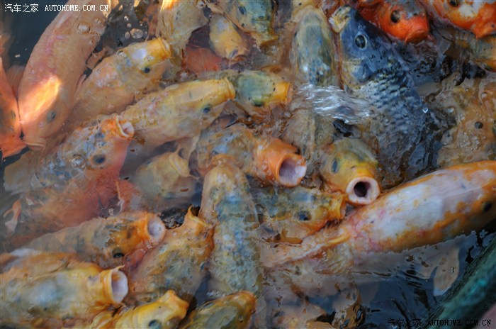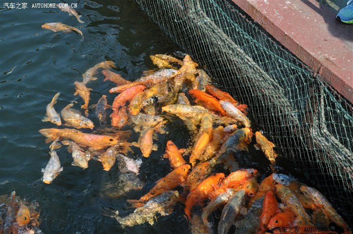 中间要走水箱上走过去可以喂鱼十元一包鱼食