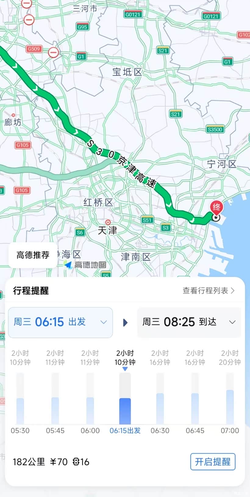 路线是从北京出发,直奔天津国家海洋博物馆附近。途径北京市海淀区,丰台区,河北省等地最终到达天津市。全程180公里左右,高速费70元。