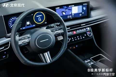 只不过,第十一代索纳塔在美中更添硬朗感。全球ONE MODEL统一设计,就是以星际战舰为灵感,打造时尚与科幻感兼具的星际战舰前脸,短前/后悬、长轴距、低重心的设计特点,配合动感流线元素与溜背造型,轿跑的既视感出现在B级车上,一改B级车印象中的老气横秋,尤其是两条立体化的跨越式腰线,果真是时尚运动中,还兼具科技感。