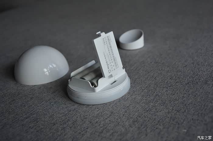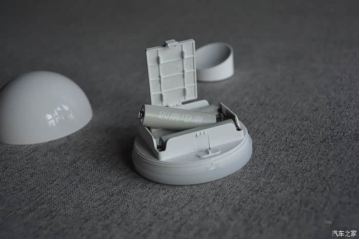 旋开半圆形的后盖之后可以看到 这款灯的供电方式采用了电池供电,使用5号电池 。