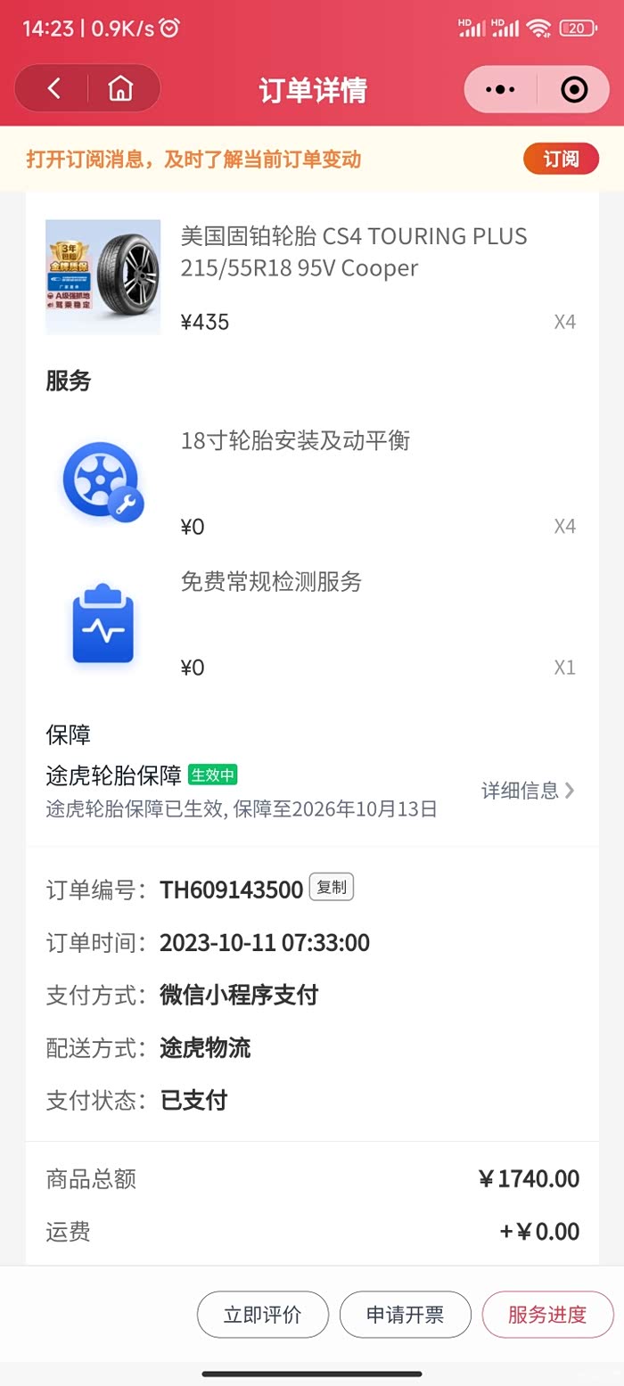 我月初才换的4条双星的轮胎,300多一条