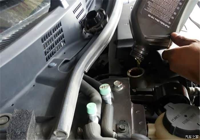 然后就是换机油,师傅们干活的速度很麻利,甚至不用多少工具,端着机油桶直接灌也不会洒到外面一星半点,业务能力真是棒,点赞。