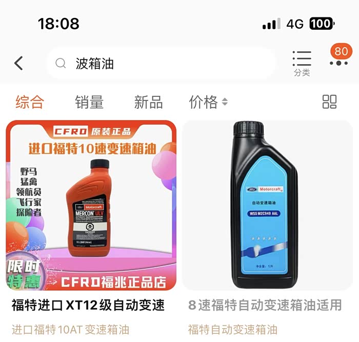 结论:1.某宝热门福特专卖货是真的;2.冒险家选变速箱油,买锐际款福特牌变速箱油(M2C949,嘉实多代工)就足够了,物美价廉。同时,这款变速箱油在京东也有自营。