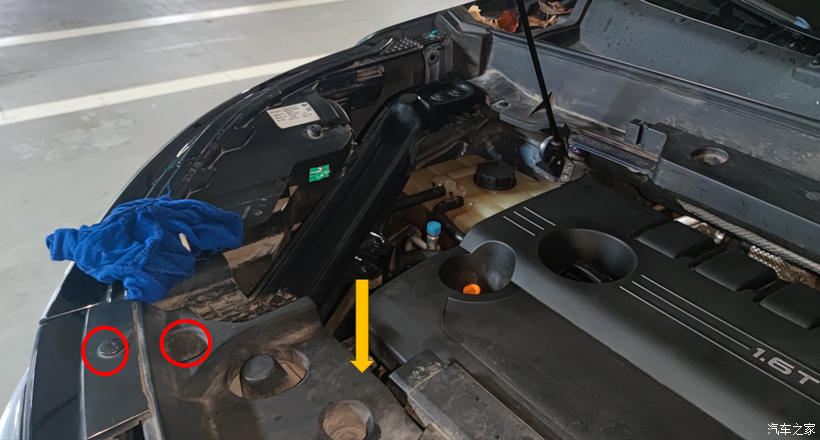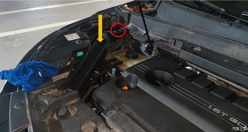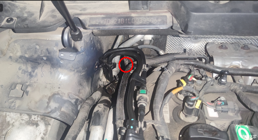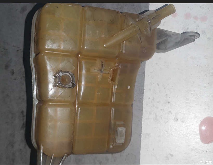 第2步:用卡箍钳子松脱回水管(做标记防止插错)并接入外置水管和收集桶( 安装复位后倒回副水箱),发动引擎排出副水箱的冷却液,液位见底后停止发动机。