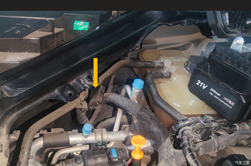 第4步: 拆除机仓加强板和水管支架钣金, 水管线扣, ( 5个10mm 套筒), 松开支架腾出操作空间, 不好取下可以不取下。