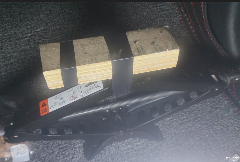 第8步: 用车用千斤顶( 顶部加木块), 顶起发动机进右侧机脚侧。 观察升起的效果( 可以观察机脚支架个机脚橡胶块的距离变化)更换是可以适当调整高度满足拆卸。