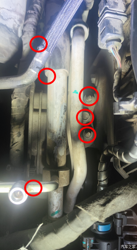 第5步: 拆除固定空调管路螺母和前部固定空调管路支架螺丝, 并拆除碳管电磁阀