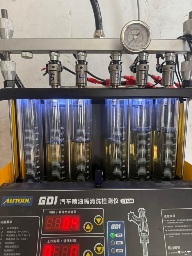 之前就研究过喷油嘴,所以提前收了几个拆车的喷油嘴备用,整好用上,去检测并清洗喷油嘴,一共11个喷油嘴,最后挑出来7个好用的,装车6个还剩一个备用
