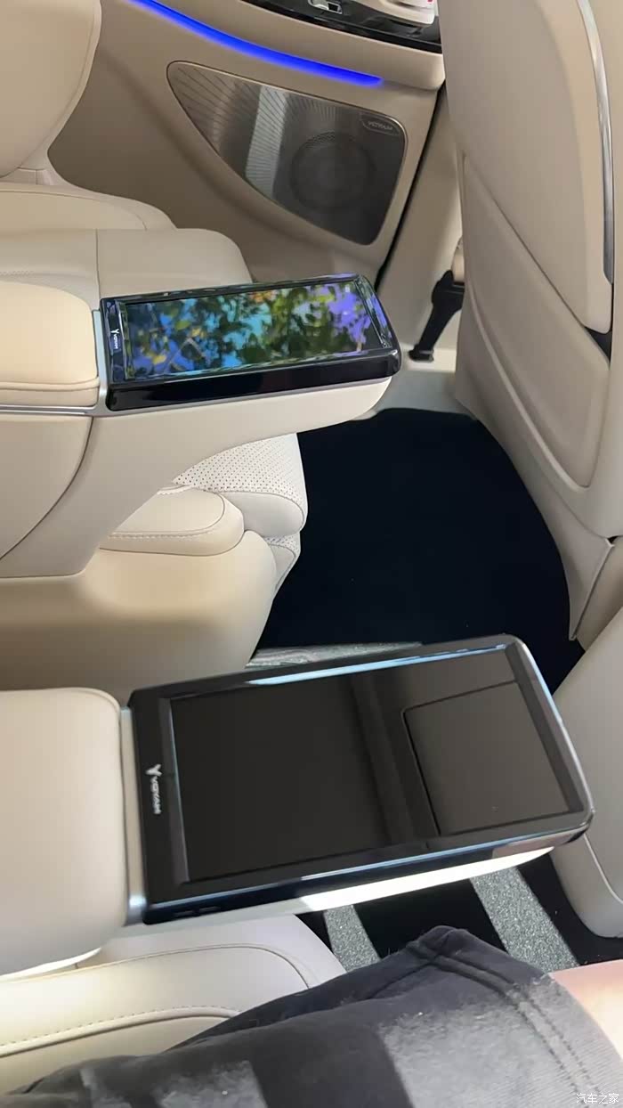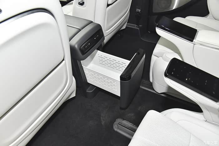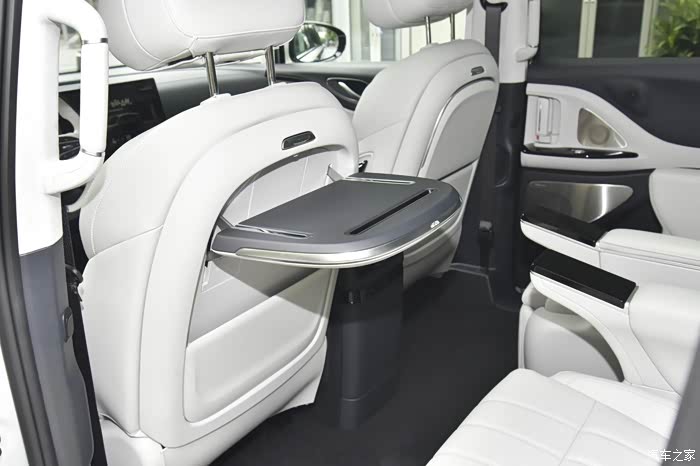 第二排是整车的精华所在,配备了两个独立的零重力座椅。这两个座椅不仅可以前后、左右调节,还具备按摩、通风、加热等功能。在接孩子放学等待的时候,打开按摩功能,躺在零重力座椅上,这感觉,一天的疲惫都能瞬间消散,主副驾座椅后边还配备了小桌板,方便在行驶途中用餐或者放一些东西