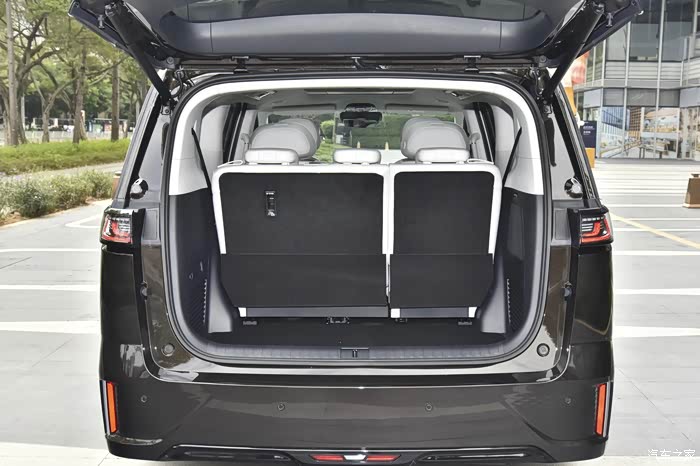 第三排座椅还可以电动调节,可以根据乘客的需求调整靠背角度和前后位置,如果需要装载更多的物品,还可以将第三排座椅放倒,形成一个超大的储物空间,满足大空间的装载需求。