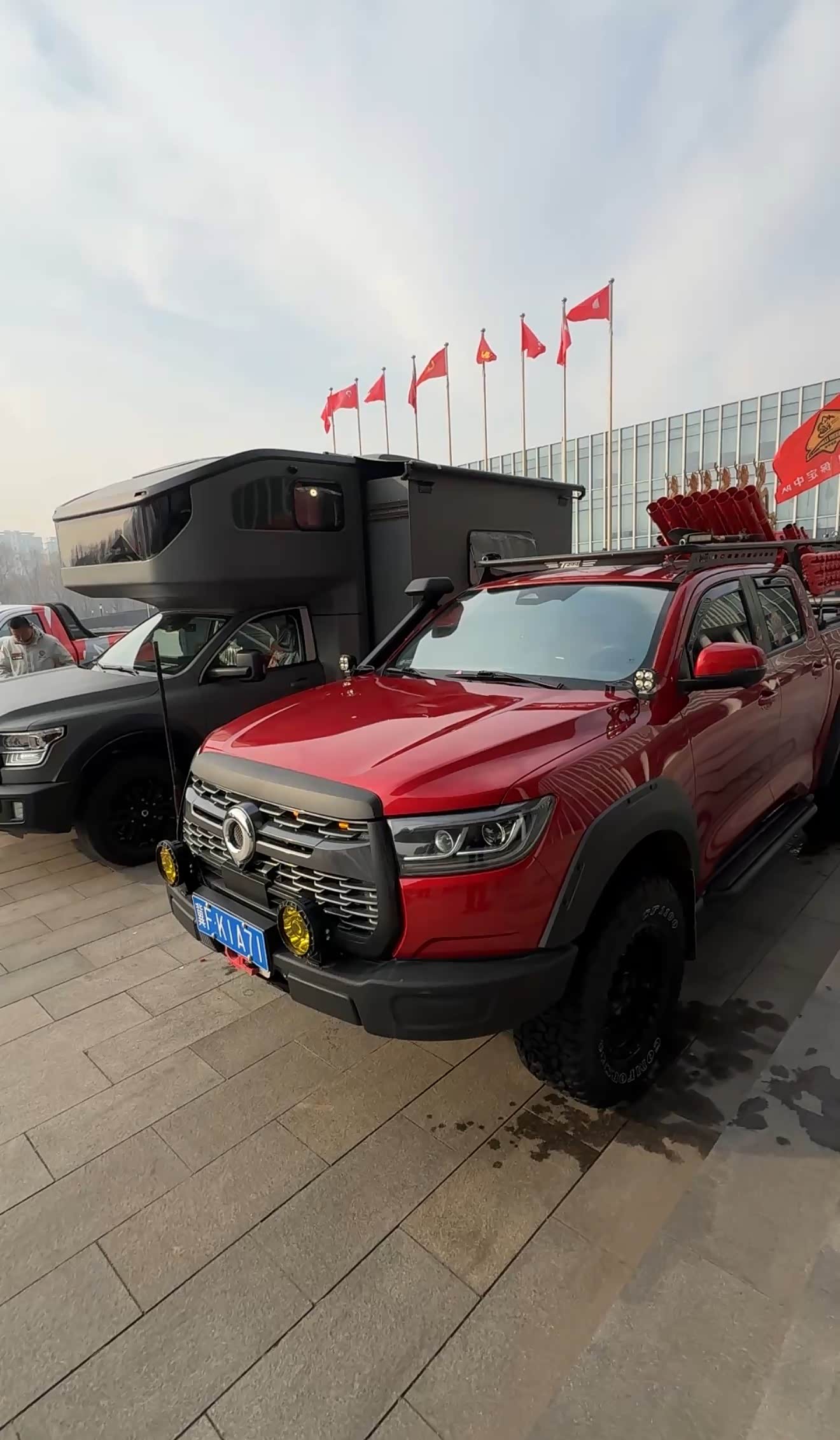这场景可太有滋味了,现代工业的硬核劲儿和咱传统文化的喜庆感撞了个满怀,这也正合着长城汽车的性子:既有皮卡改装文化的野劲儿、冲劲儿,又有企业大家庭围坐在一起的温温暖暖的感觉。房车版的黑色长城炮,设计得那叫一个实用,干啥都顺手;而这辆当礼炮车的越野版,又把庆典的氛围感拉满,俩车搁一块儿,把 “中国智造” 的多样玩法诠释得明明白白。