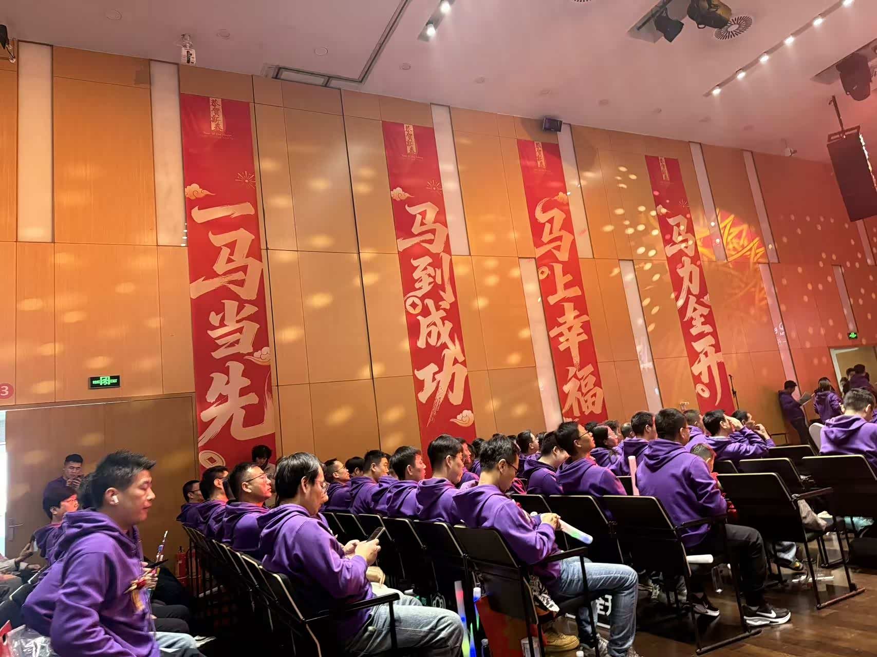 当它驶入年会现场时,礼炮齐鸣的绚烂彩带与紫色工装的人海相映成趣——长桌上饺子热气氤氲,同事们举着手机记录这沸腾时刻。